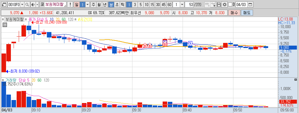어제 시외에서 상한가가고
